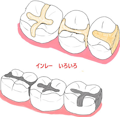 → 金属の被せ物で、表側のみ白いレジンを接着したもの。
